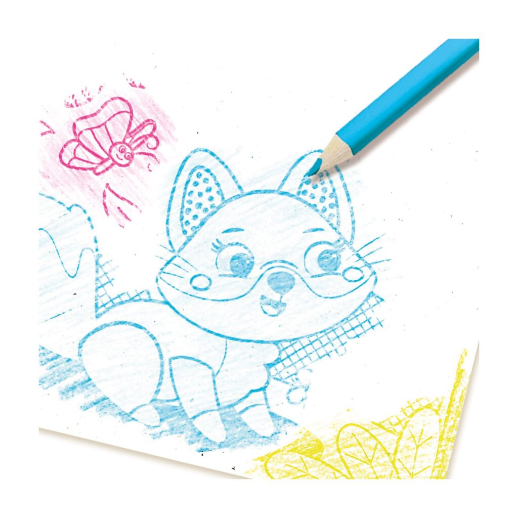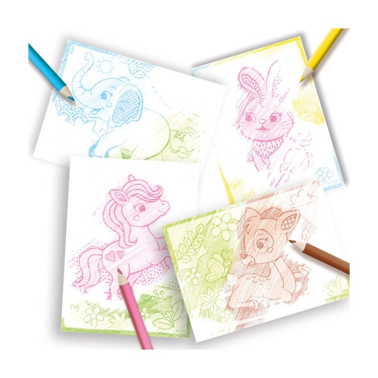 Each of the six cards has a hidden picture printed in invisible white lines. As you colour over the card with one of the eight included pencils, the white lines resist the colour, revealing the hidden image of a cute animal. It’s a fun and easy way to create a perfect picture every time.
