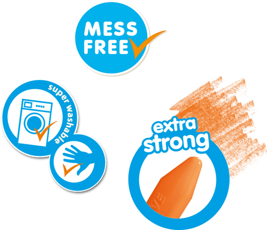 The ergonomic shape helps to encourage a proper grip, while the extra-strong wax formula means they are virtually unbreakable. Parents will love that they are designed not to stain or rub off on hands, and any marks are easily washable from most fabrics. Let your toddler’s creativity run wild as they create their first colourful masterpieces.