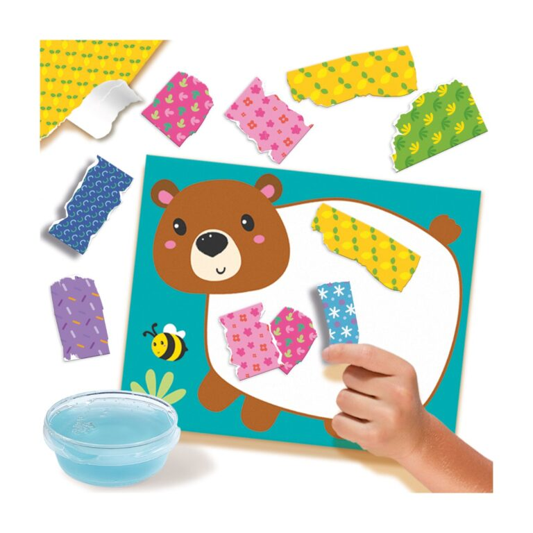 Part of the “My First” range, this Tearing and Sticking set from SES Creative is a fantastic first collage activity for toddlers. This kit is designed to help young children explore textures and shapes in a fun, hands-on way. It is a brilliant activity for developing dexterity and creative expression.