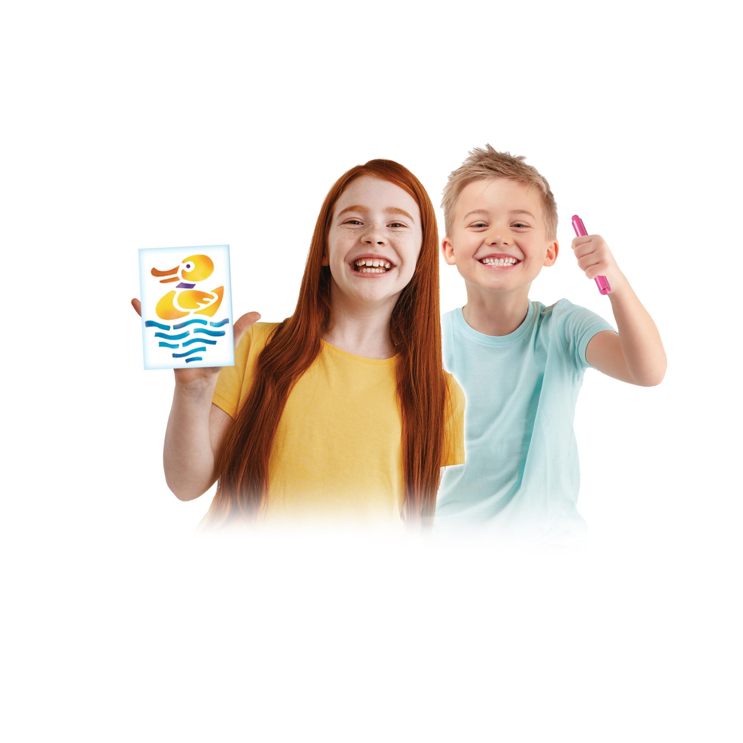 Create amazing pictures with a cool, professional finish with the Small World Airbrush Artist Kit. This brilliant set features a battery-operated airbrush device that sprays ink from the included markers, creating stunning artistic effects. Use the 16 stencils to create perfect shapes, or go freehand to design your own unique masterpieces. Add a touch of sparkle to every picture with the included glitter. The Small World Airbrush Artist Kit provides hours of creative fun for any young artist.