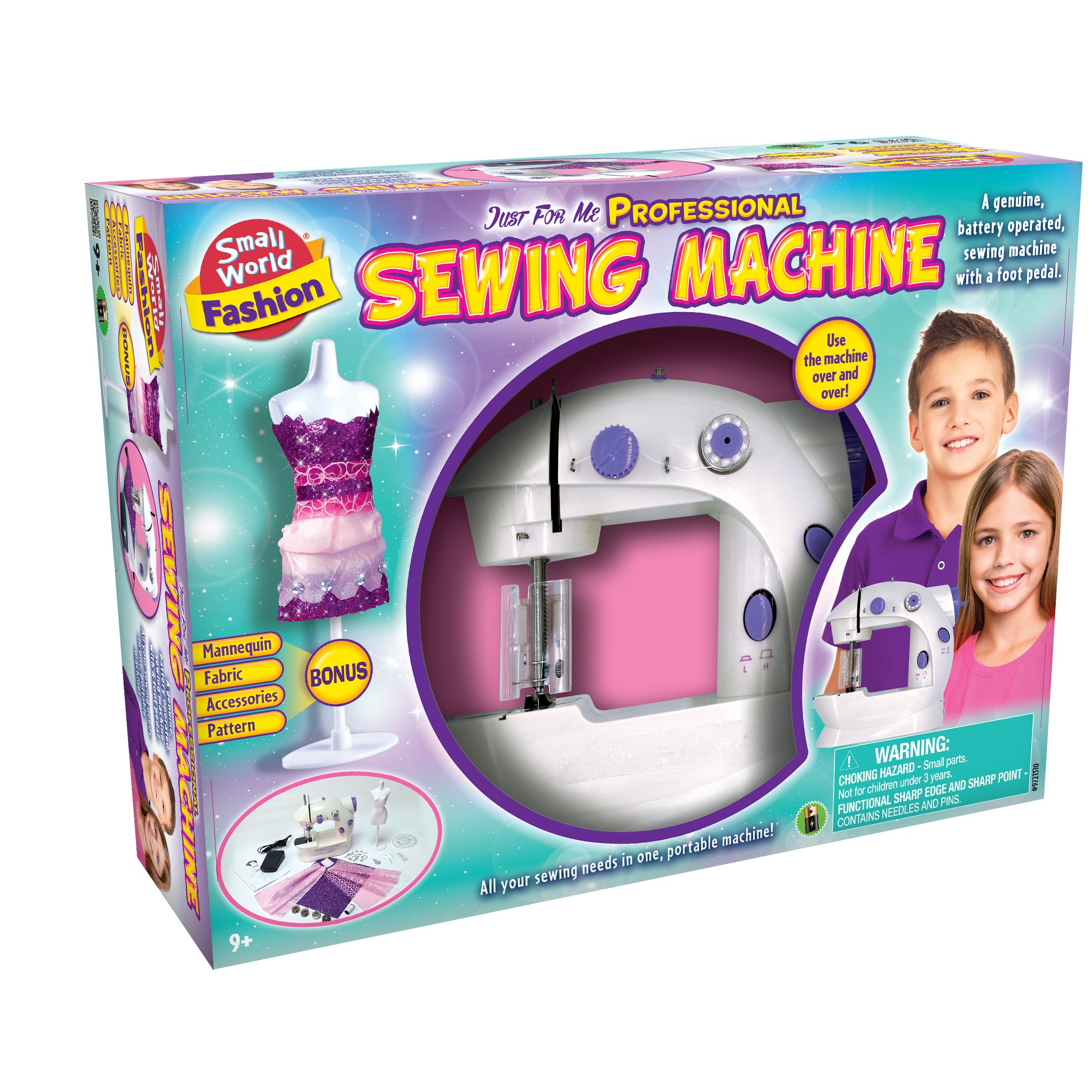 Learn the basics of a real lifelong skill with the Small World Kids Professional Sewing Machine. This brilliant set is the perfect introduction to the world of fashion design. The battery-operated machine works just like a full-sized one, with a foot pedal to control the speed and a safety protector over the needle to keep little fingers safe. Use the included fabric and pattern to create a stunning outfit, or design your own unique creations. The Small World Kids Professional Sewing Machine comes with a mannequin to display your finished work.