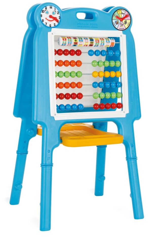 Encourage learning through play with the Pilsan Abacus Drawing Board Easel in blue. Suitable for children aged 3 and up, this versatile easel combines a whiteboard for artistic expression with an integrated abacus for hands-on counting practice, making it an excellent addition to any playroom or learning environment.