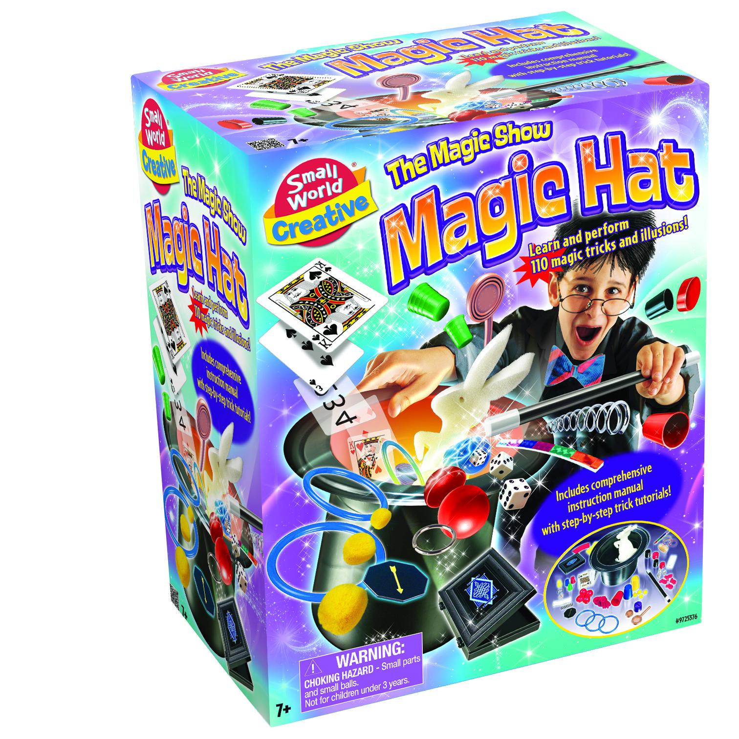 With The Magic Show Magic Hat, children can amaze and captivate the audience with the 110 tricks and illusions designed especially for them. This magic hat set includes a magicians hat and wand, plus everything they need to perform the coin paddle trick, rope/ring trick, and loads of tricks with cards, dice, balls and more. There’s even a foam rabbit to pull out of the hat. Of course all the directions are included in the magic manual. The Hat measures 27.3 x 27.3 x 22.9 cm. Suits ages 8 years +.