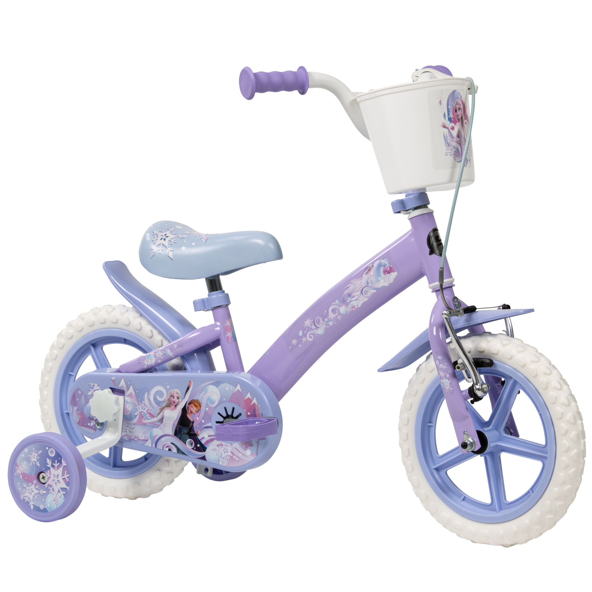 Embark on frosty adventures with the Toimsa Disney Frozen 12 inch Bicycle! This enchanting bike is beautifully decorated with graphics of Elsa, Anna, Kristoff, and Sven, making it a perfect first bike for young Frozen fans. Designed to help children learn to ride with confidence, it comes equipped with removable stabilisers. The Toimsa Disney Frozen 12 inch Bicycle also includes a handy front basket, ideal for carrying small toys or treasures on their icy escapades. Finished in delightful shades of blue, purple, and white, with an adjustable seat and handlebars to grow with your child, and a reliable front calliper brake, this bicycle is ready for magical Frozen-themed journeys.