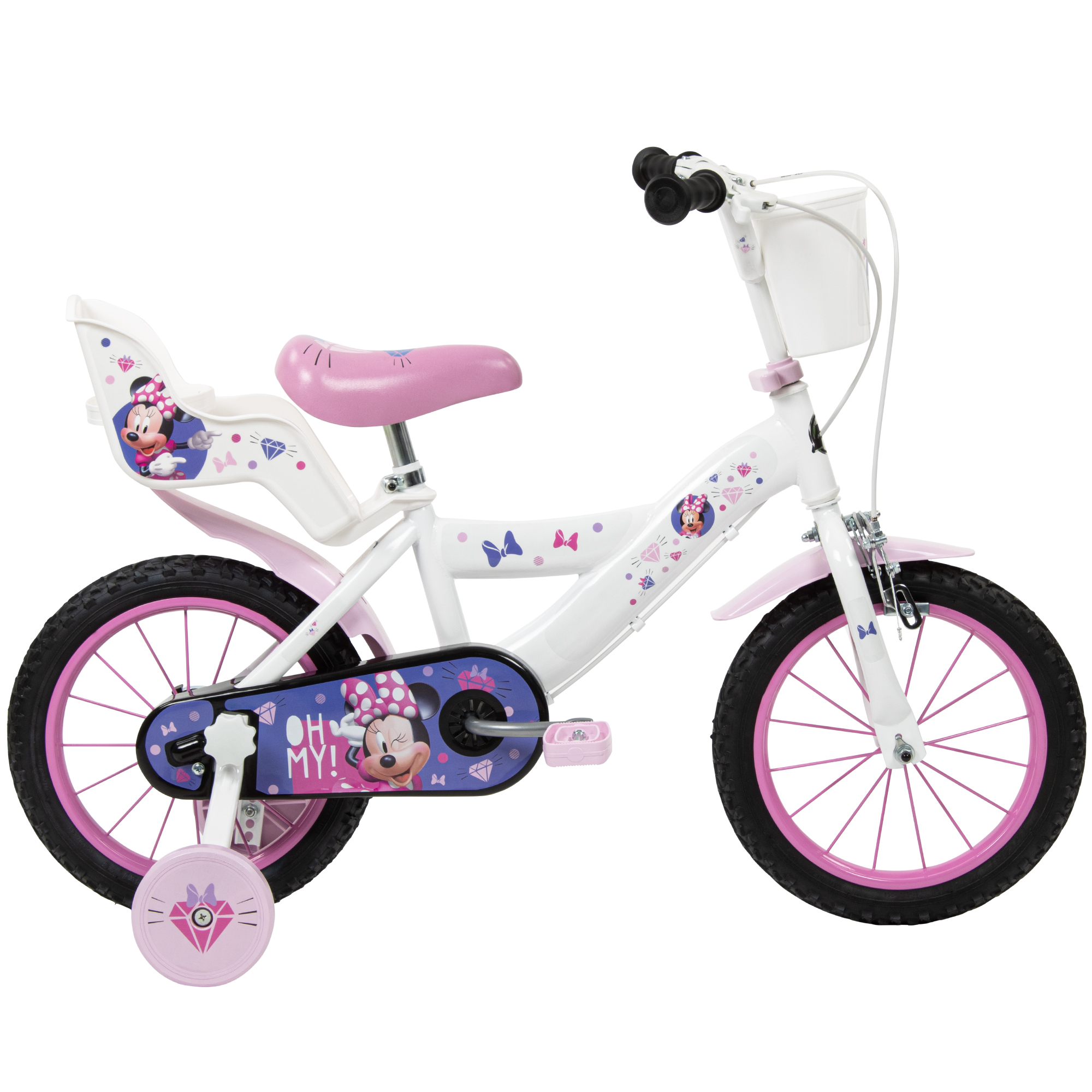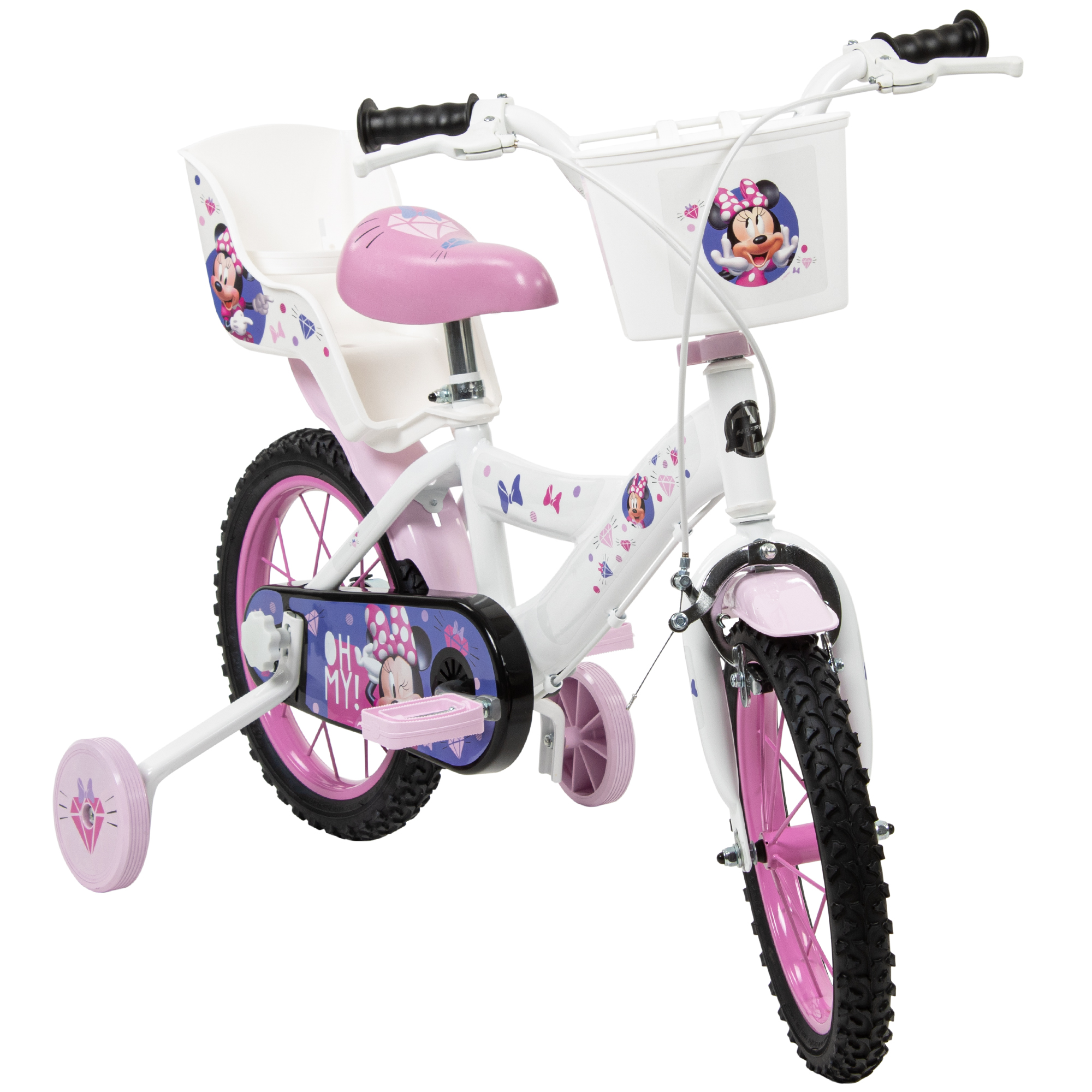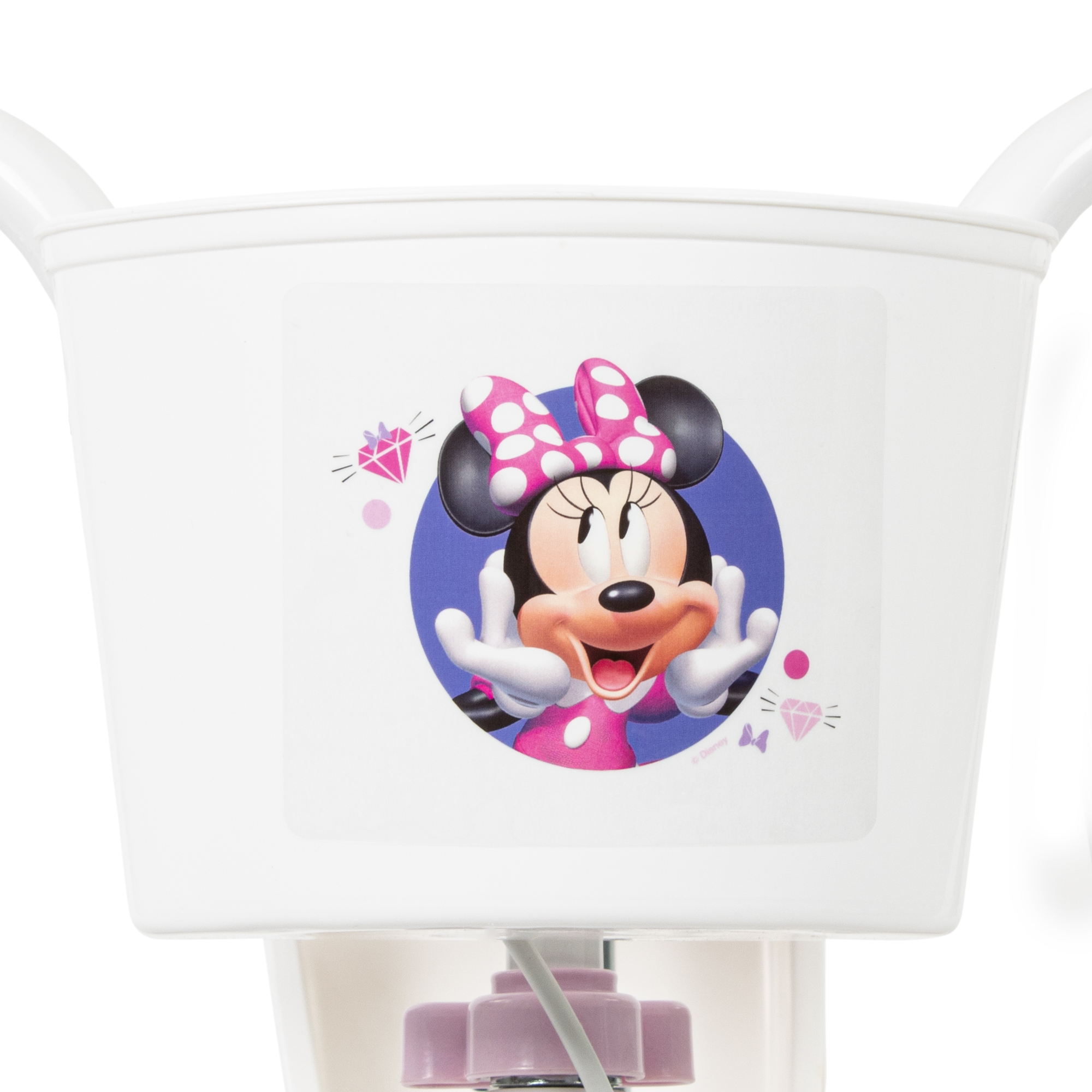 Ride in style with the delightful Toimsa Disney Minnie Mouse 14 inch Bicycle! Perfect for young Disney enthusiasts, this bike is adorned with charming Minnie Mouse graphics, bows, and hearts, making every cycling adventure magical. Designed for children learning to ride, it includes removable stabilisers to help build confidence and balance. The Toimsa Disney Minnie Mouse 14 inch Bicycle also features a lovely rear doll carrier, so a favourite companion can join in the fun, and a practical front basket for carrying essential play items. With its vibrant pink design, adjustable seat and handlebars for growing riders, and a reliable front calliper brake, this bike is a wonderful choice for little ones.