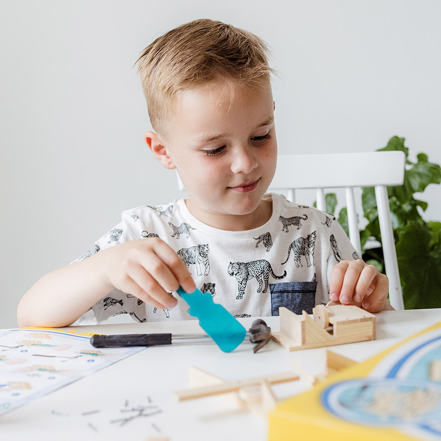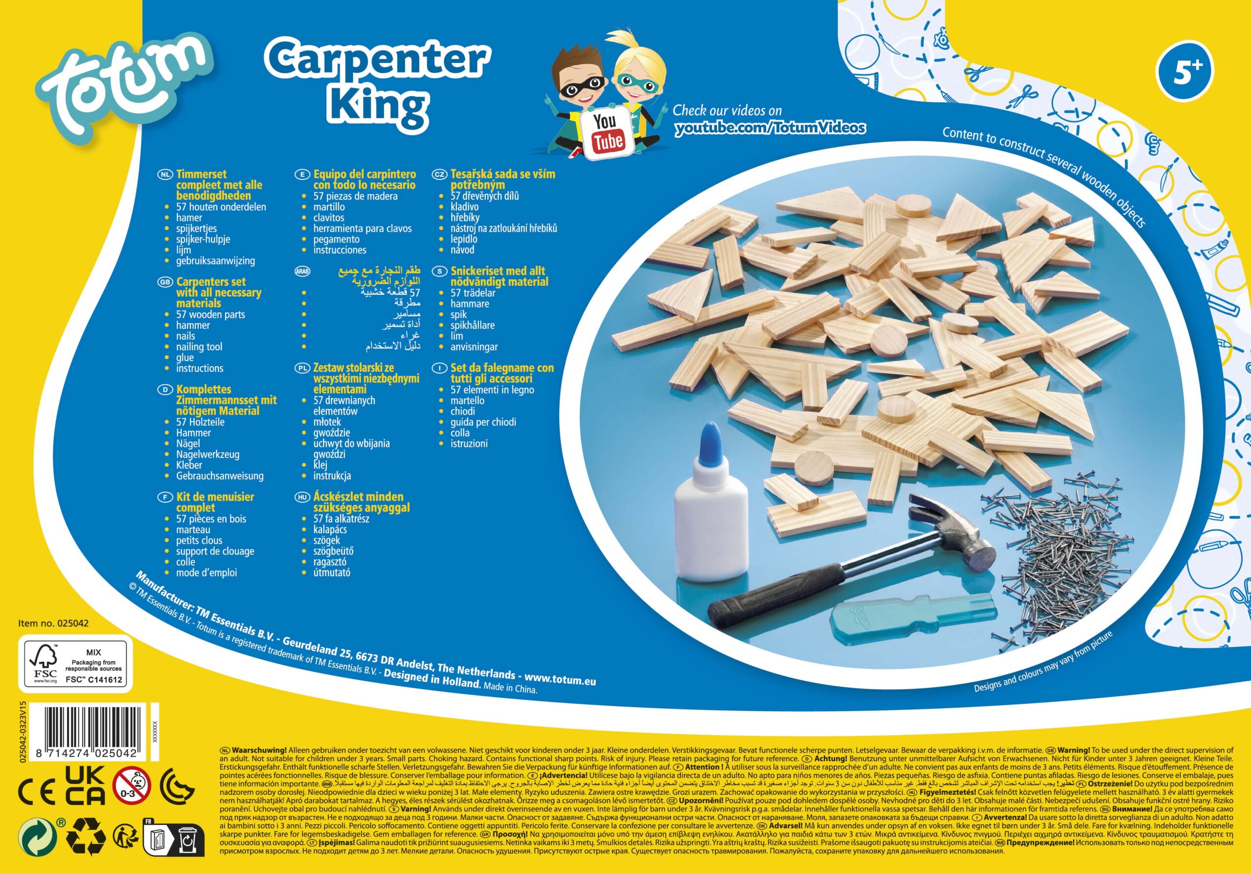 Introduce children to the satisfaction of building with real tools with the Totum Carpenter King woodworking kit. This brilliant set comes with a child-sized hammer, pre-cut wooden pieces, nails, and glue, providing everything a young builder needs to get started. Kids can follow the instructions to create fun models like a car or an aeroplane, or use their imagination to design their own unique creations.