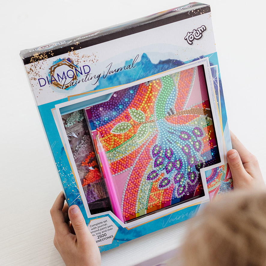 Create a beautiful, personalised notebook with this stunning Diamond Painting Journal kit from Totum. This relaxing and rewarding craft allows you to decorate the cover of a high-quality journal with over 2500 sparkling rhinestones, creating an intricate and colourful peacock design.