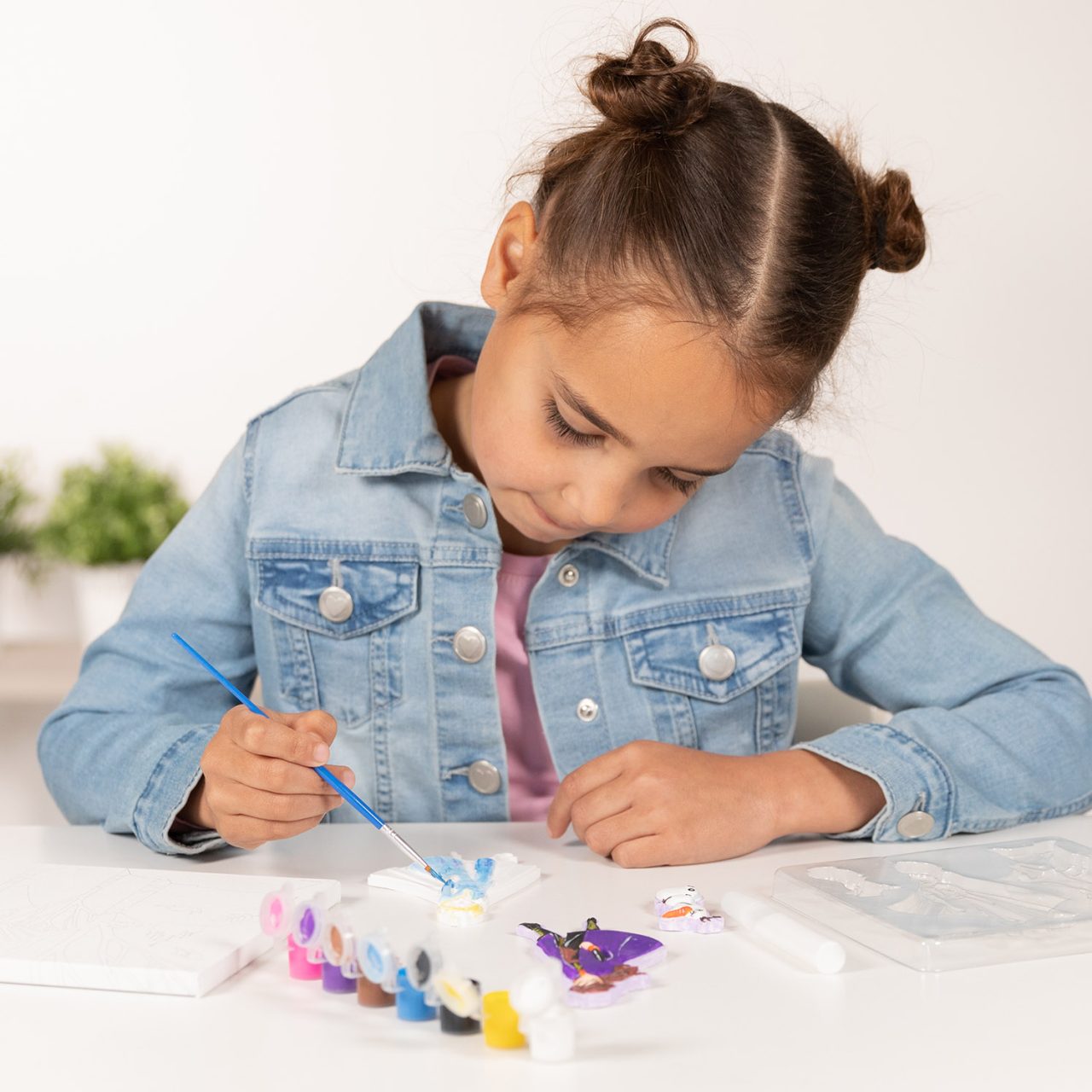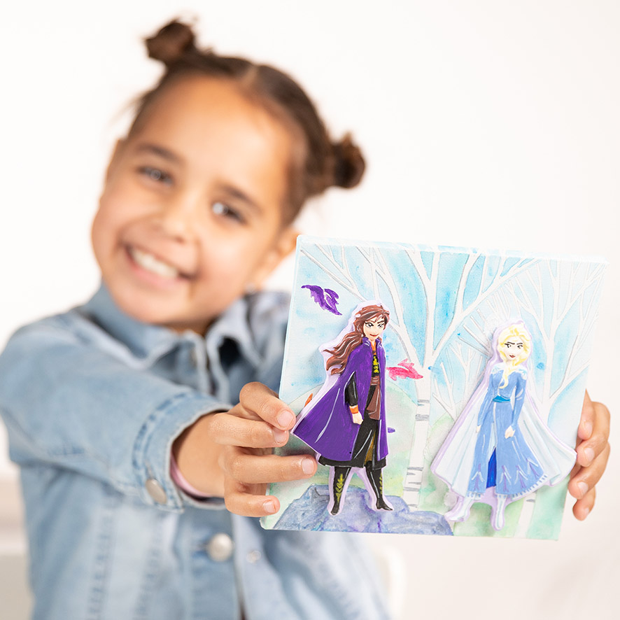 Create a stunning piece of art with the Totum Disney Frozen 3D Canvas Painting kit. This unique set lets children build a beautiful, layered scene featuring their favourite characters. The activity begins with painting the three detailed plaster figures of Anna, Elsa, and Olaf using the six paint colours provided. The background canvas, which shows a forest scene, can also be painted to add extra detail and colour.