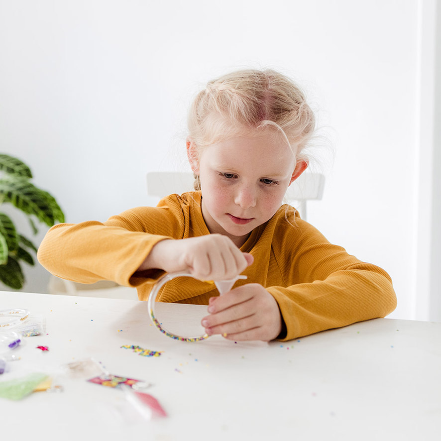 Create your own unique and stylish accessories with this fantastic Glitter Tube Bracelets kit from Totum. This fun and easy craft allows you to make your own shaker-style bracelets, filling them with a custom mix of colourful beads and glitter.