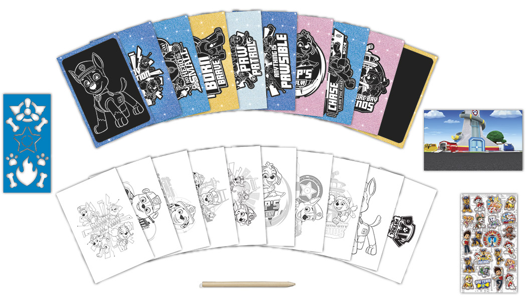The fun doesn’t end there. This activity book also includes 11 colouring pages, a sheet of character stickers, and a reusable stencil to add extra detail to drawings. The Totum Paw Patrol Scratch Art Activity Book is a fantastic all-in-one set for keeping creative kids entertained at home or on the go.